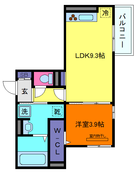 LDK 9.3帖/洋室 3.9帖 - 向き