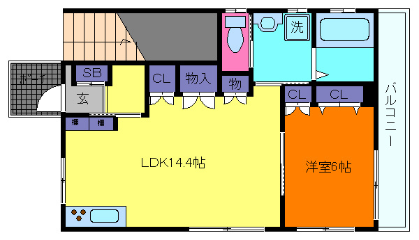 LDK 10.6帖/洋室 6.1帖 - 向き