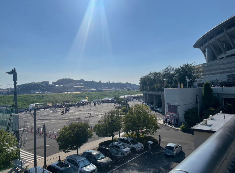 会場に着いたのは夕方。すでにスタジアム周辺は黒Tシャツ姿のファンで埋め尽くされ、グッズ売り場には長蛇の列。