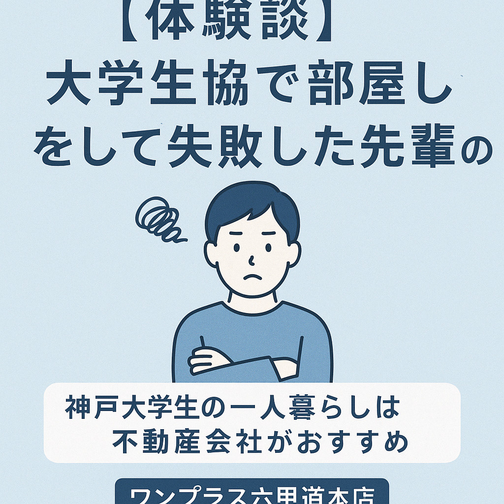 大学生協で部屋探しをした先輩の「失敗談」を紹介。神戸大学周辺の一人暮らしは地域密着の不動産会社で探す方が安心!六甲道でのお部屋探しはワンプラス六甲道本店へ。