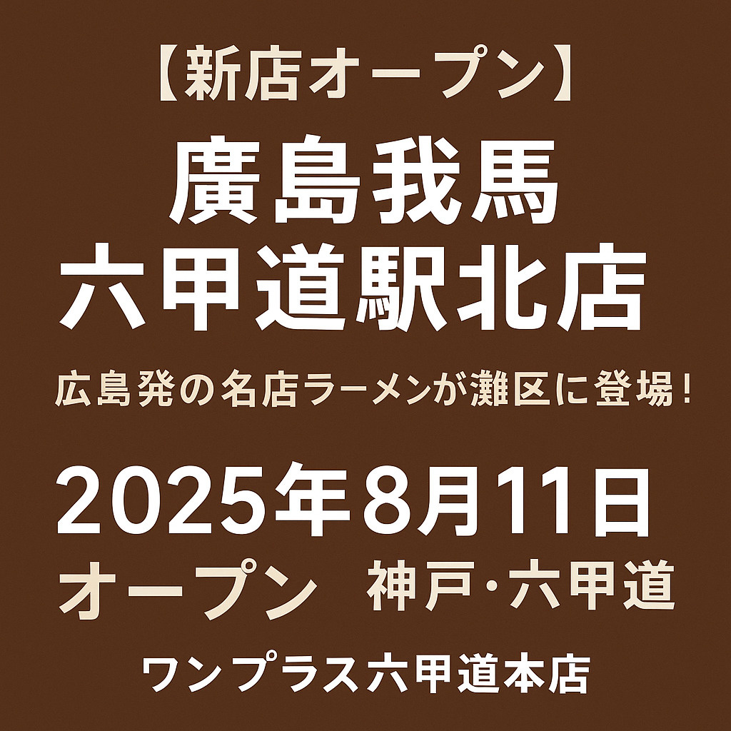 六甲道駅北に広島発ラーメン「廣島我馬」が2025年8月オープン!灘区での暮らしを彩るグルメ情報と賃貸物件探しはワンプラス六甲道本店へ。