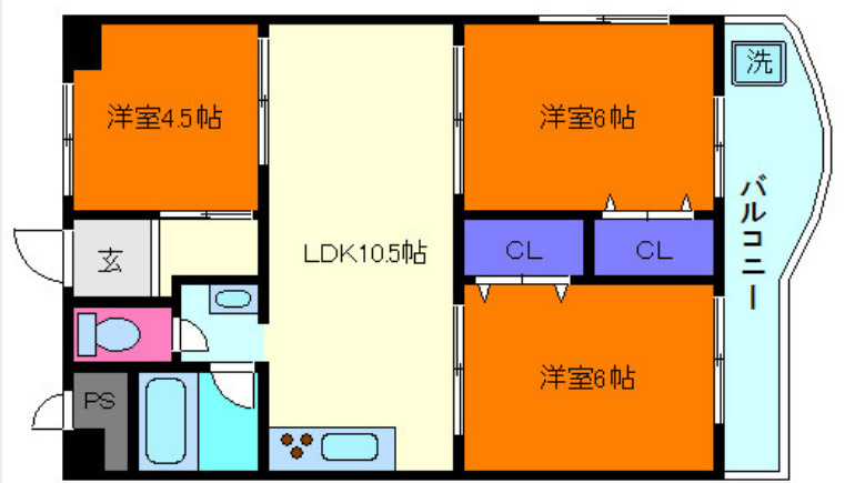 間取り:3LDK(洋室6帖×2、洋室4.5帖)
