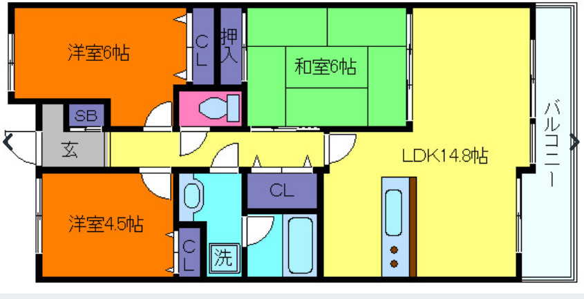 広々とした3LDK … 個室を確保できるため、家族が増えても安心。