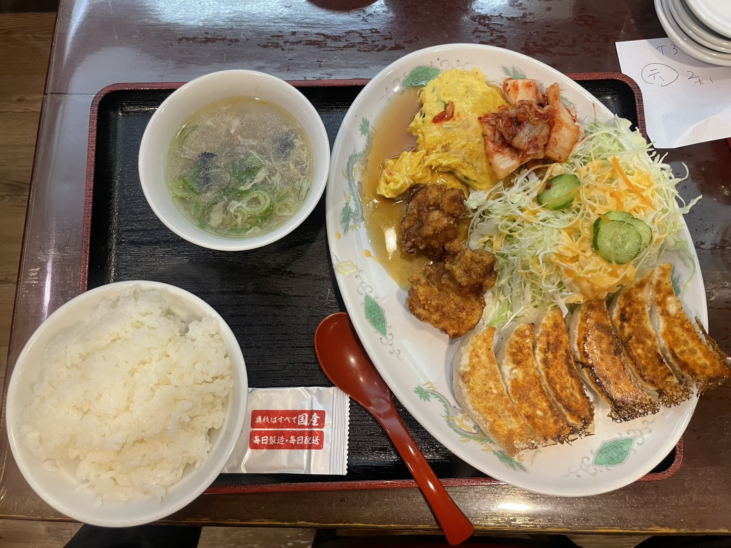 — 餃子・唐揚げ・玉子焼き・野菜が全部そろう、六甲道の神コスパ定食 —
