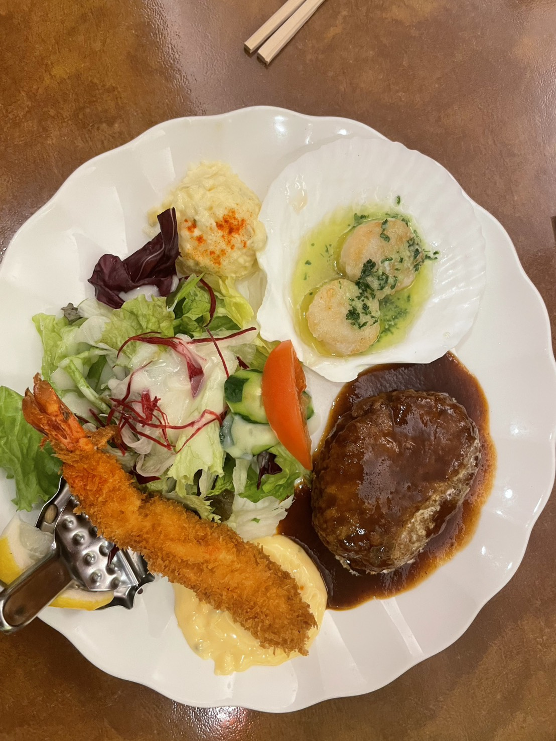ハンバーグ・エビフライ・帆立バター焼きが絶品