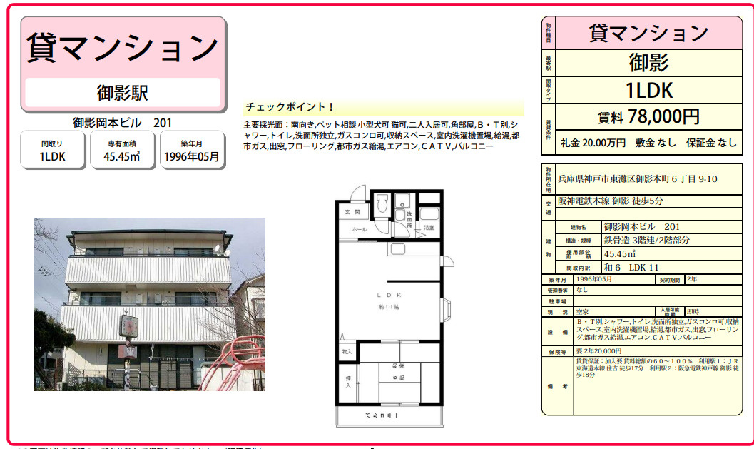 御影エリアでこの条件は競争率が高く、